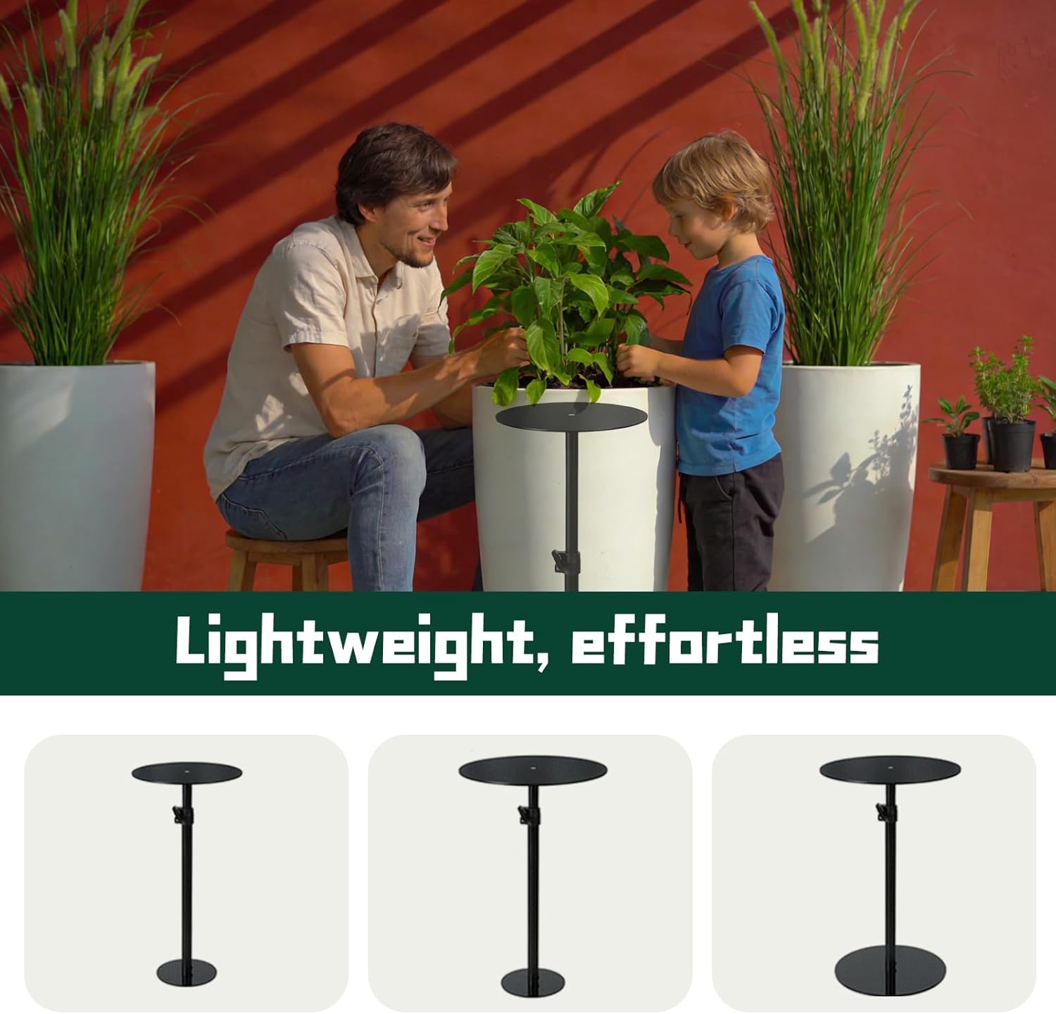 This adjustable plant riser (set of 1) is a practical and versatile solution for both indoor and outdoor potted plants. With a height range of 11-20 inches and three interchangeable base tops (6"/8"/10"), it fits perfectly into large tall taper planter containers, serving as both a plant lift to improve sunlight exposure and a pot filler to save soil. Designed as plant risers for inside pots and pot risers for outdoor planters, it works well in various scenarios, effectively preventing root rot while being easy to install and reuse. It is an essential helper for gardening enthusiasts to optimize the growth environment of plants and keep the planting space neat and organized.