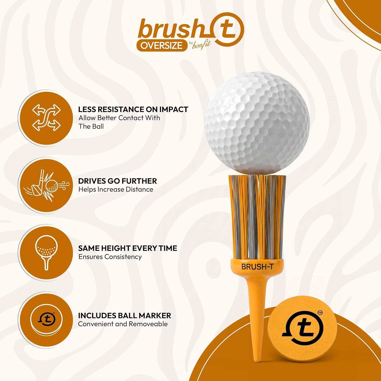 Brush-T 9 Piece set - Oversized (2.4") Golf Tees - Low Friction, More Distance, Consistent Height , Orange