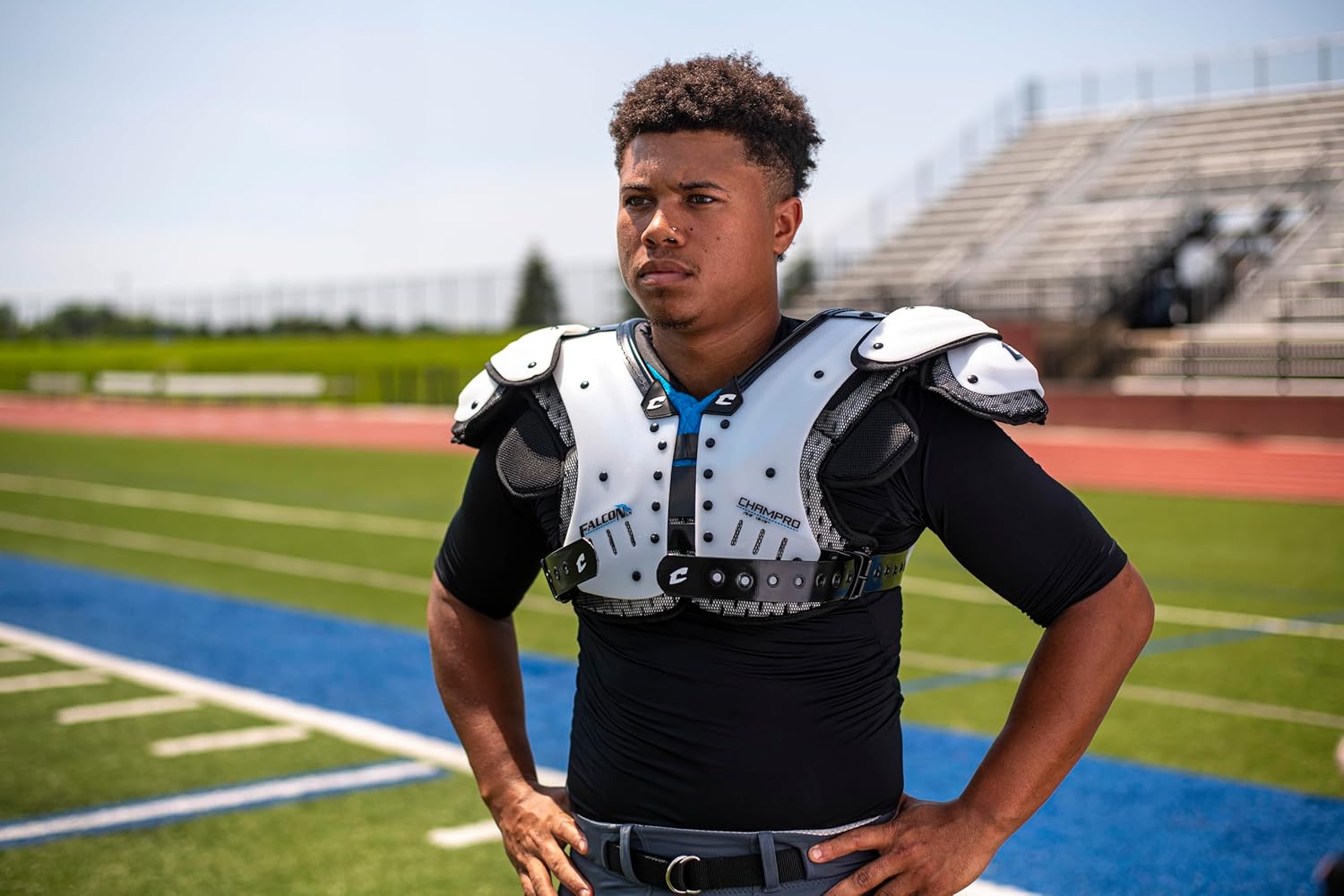 Designed for offensive and defensive linemen, the Falcon Lineman Shoulder Pads prioritizes maximum coverage. Their low-profile flat pad design ensures a snug fit, movement-friendly fit, while the breathable 360 yoke adds extra coverage of sensitive areas. The larger neck opening and increased chest dimensions deliver a secure yet relaxed fit to keep athletes comfortable during intense action. The pads’ 5/8" thick closed-cell foam lining and redundant foam shoulder channels deliver superior shock absorption and impact reduction. Athletes can adjust and remove the deltoid pads and shoulder channels for their preferred coverage level and fit. With extensive coverage, these pads give athletes the freedom to strike hard.
