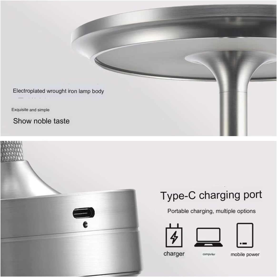 Tap the top to switch the light, and long press to dim or brighten the light Specifications: Size :11.2*5.2in Material: Aluminum + Acrylic Color: Black, Gold and Silver Light Source: LED + 3.5W Function: Type-C USB charging Battery capacity: 3000 mAh Full charge time: 3-4 hours Run time: 6-12 hours *Up to 30 hours on dimmed light Note: 1. Actual color may differ slightly from the image due to different monitors and lighting effects. 2. Please allow 1-2 cm deviation due to manual measurement