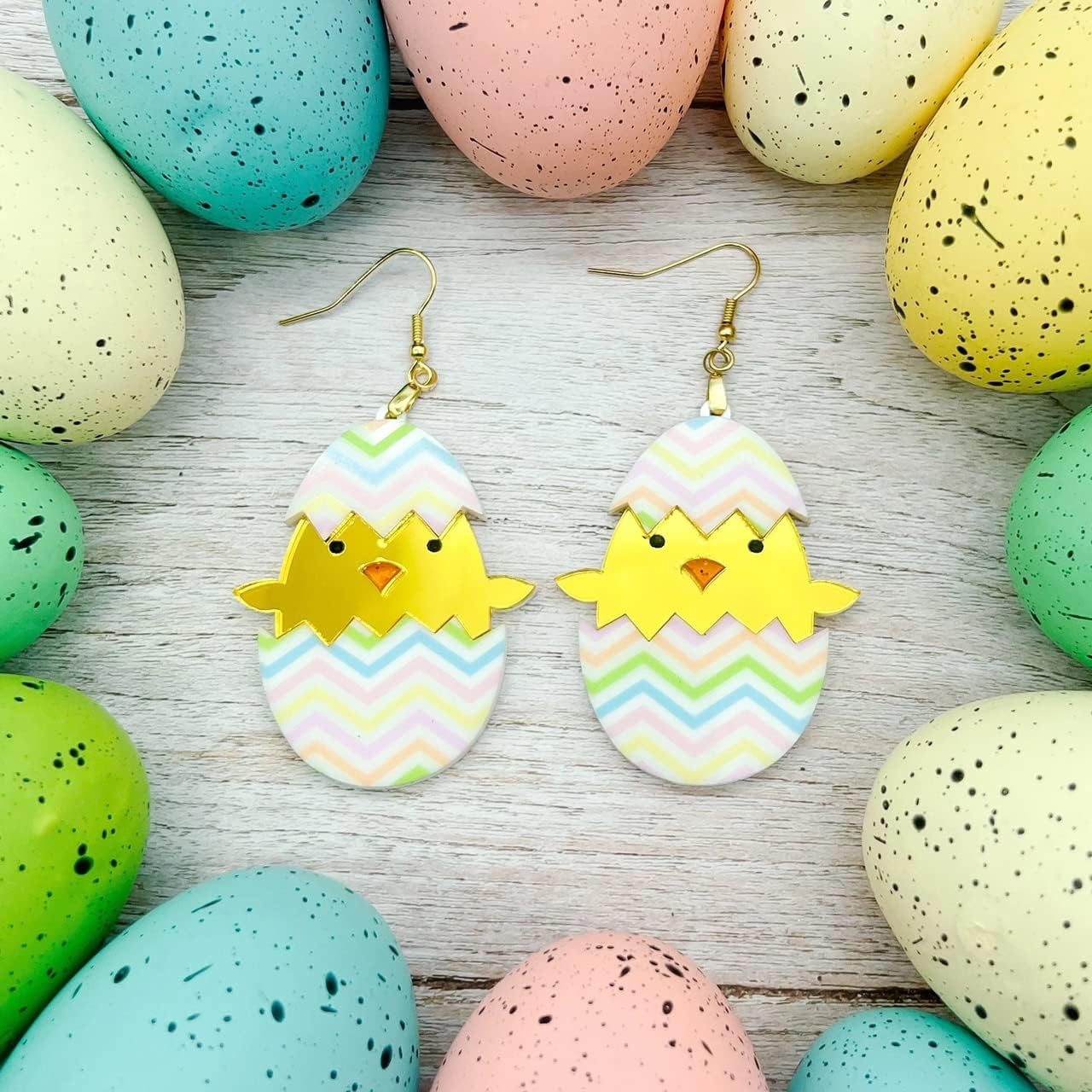 Easter Chick Dangle Earrings/Statement Jewelry/Hand-made Acrylic Earrings made in Wisconson USA
