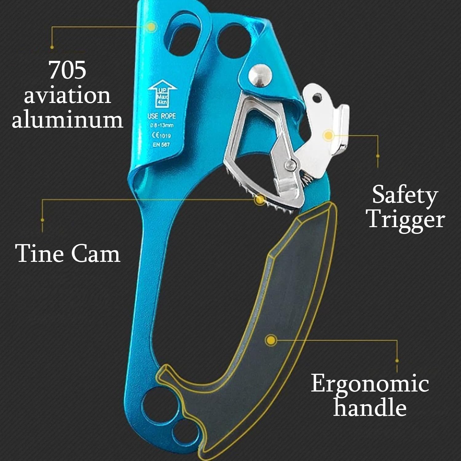 Product DescriptionCams Installed Allow Device To Move Smoothly Along Rope Upward Or In The Arrow Mark Direction But Clamp To Rope When Pulled In The Opposite Direction.Specification:Name: AscenderApplicable Weight: Max 4k (About 400kg)Material: Aviation Aluminum MaterialWeight: 240gScope Of Application: Mountaineering, Rock Climbing, Expansion, Caving, Srt, Indoor Ascent TrainingPackage List:2 X Climbing Hand Ascender"1.We Provide Clear Pictures, Measurements Where Possible. Please Check As Much As Possible To Make Sure The Item Is The One That You Need."2. Please Allow 0.5-1 Inch Difference Due To Manual Measurement.(1inch=2.54cm)"3.The Color Of The Actual Items May Slightly Different From The Listing Images Due To Different Computer Screen, Thanks For Your Understanding."