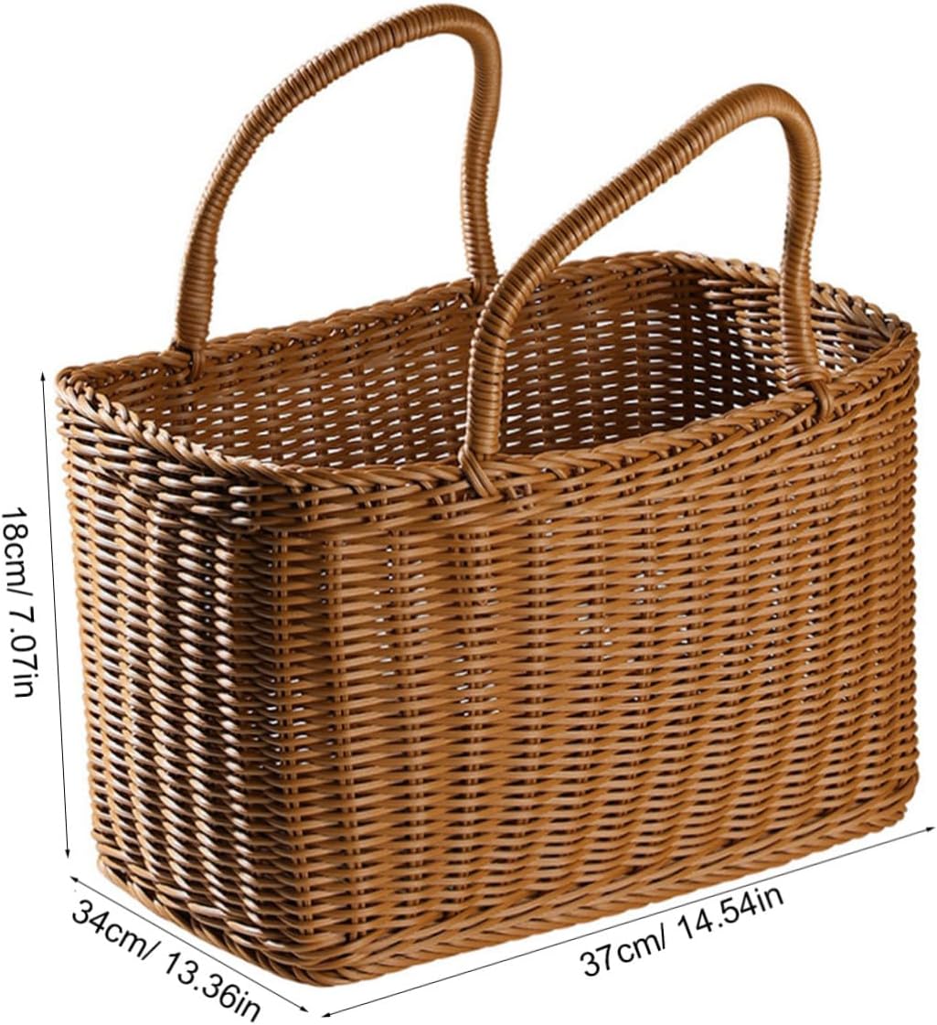Package Include 1 x Woven Basket Features - Size: 37.00X32.00X18.00cm/14.54X12.58X7.07in Storage Basket - Color: Brown Household Storage Container - Material: Plastic Rattan Woven Basket - It is portable, you can take out easily. can put it wherever you like Packing Basket. - This product also can help you to decorate weddings or your home in holidays Vegetable Basket. - It can store flowers and even dried flowers. They will be the beautiful scenery of your home Woven Basket. - Suitable for wedding party, proposal, banquet, festival storage adornment etc Arrangement Basket. - Putting some beautiful flowers, it is a wonderful your friends or anyone you loved Basket.Goods InformationVegetable Basket With a handle, it is portable, and you can take it out.Decorative Basket Suitable for wedding packing and also decorating your room.Rattan Woven Basket Made with nice materials, so this product is , and you can use it for a long time.Household Hand Basket This product is a delicate basket, it looks attractive.Household Storage Container Putting some beautiful flowers, it is an attractive your receivers