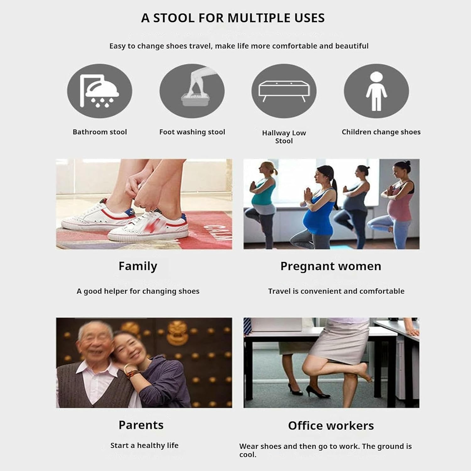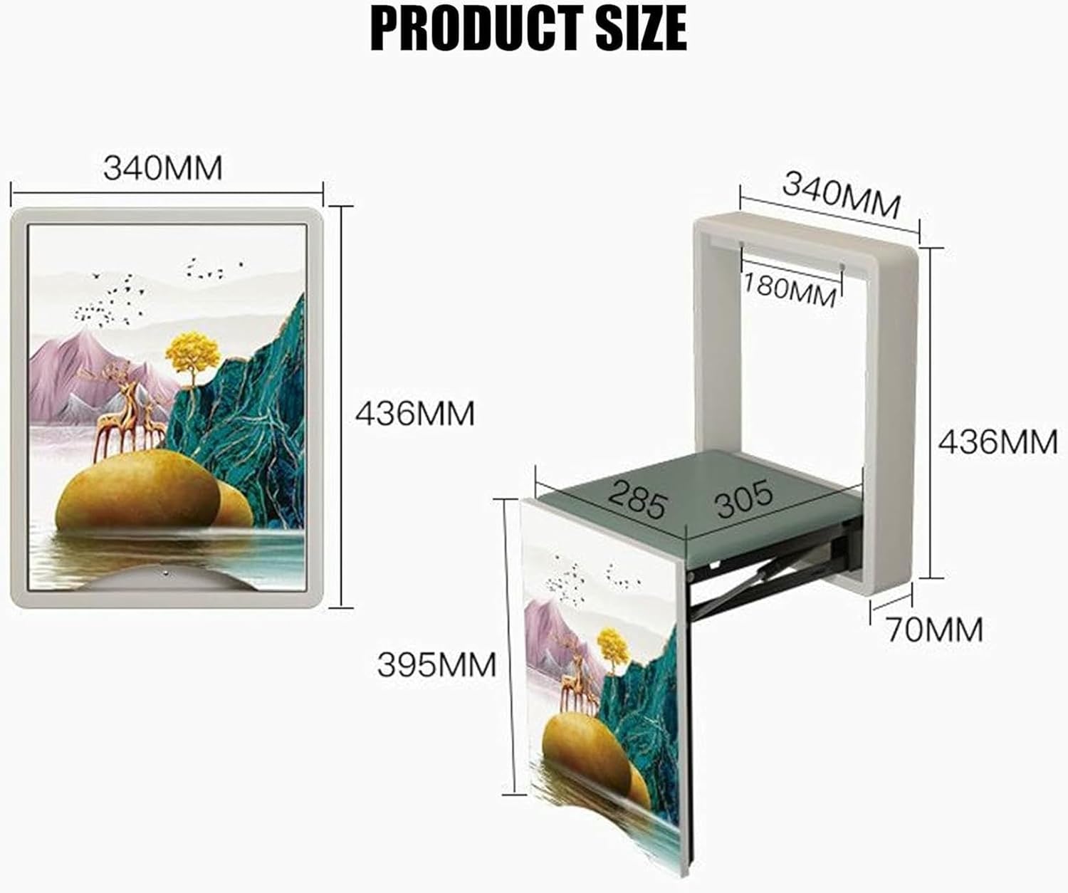 Product Description:Upgrade Your Entryway with Our Space-Saving Wall-Mounted Folding Shoe Bench!This ultra-thin (just 2.75" when folded!) wall-mounted shoe changing stool is the perfect solution for small spaces. Made with premium rubber wood + reinforced steel frame, it supports up to 330 lbs yet folds away nearly invisibly. The soft faux leather seat ensures comfort, while the hydraulic hinge allows smooth, quiet folding. Ideal for entryways, bathrooms, RVs, and closets—install in minutes and enjoy hassle-free shoe changes every day!Product Specifications:Name: Multifunctional Wall-Mounted Folding StoolFolded Dimensions: 43.6 x 34 x 7 cm (17.2" x 13.4" x 2.75")Seat Dimensions: 28.5 x 30.5 cm (11.2" x 12")Material: Solid Rubber Wood Frame + 2mm Thickened Steel BracketWeight Capacity: 150 kg (330 lbs)Seat Height: 39.5 cm (15.5") (Ergonomic Design)Features:Hydraulic Slow-Close Mechanism (Noiseless Folding)Rounded Safety Corners (Kid & Elderly Friendly)High-Density Foam Cushion + Faux LeatherInstallation: Drill Required (Hardware Included)3. Usage Scenarios:Entryway / Porch: Sit comfortably while putting on shoes—no more balancing acts!Bathroom / Laundry Room: Use as a footstool or seating aid.RV / Tiny Homes: Maximize space in compact living areas.Closets / Hallways: Fold away when not in use—zero floor space wasted!Nursery / Elderly Care: Safe, sturdy seating for kids & seniors.