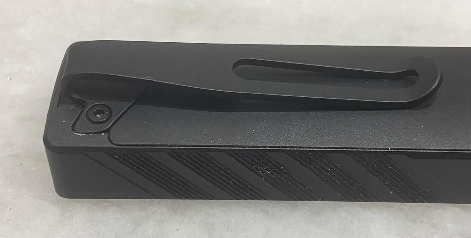 This USA custom made titanium pocket clip is specifically designed to be compatible with Olight Arkpro, Arkpro Ultra, and Arkpro Lite flashlights. Crafted from USA domestic grade 5 titanium alloy, this replacement clip offers superior strength while maintaining a lightweight profile. The flat black finish provides a tactical appearance that complements your flashlight perfectly. Each clip comes complete with mounting screws for easy installation, allowing you to securely attach your flashlight to pockets, belts, or gear bags. The elongated slot design ensures a firm grip while the mounting holes provide stable attachment points. Whether you're replacing a worn clip or upgrading to premium titanium construction, this accessory enhances the portability and convenience of your Olight flashlight. The corrosion-resistant properties of titanium ensure long-lasting performance in various conditions, making it ideal for everyday carry, outdoor adventures, or professional use.